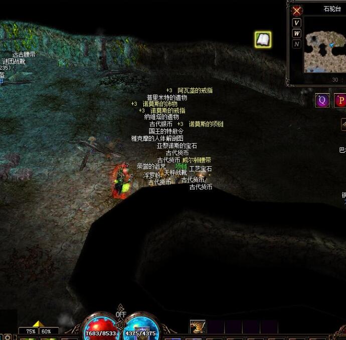 完成掉落(必掉):古代货币*5、亚黎诺斯的宝石、 雅克摩的人体解剖图 、国王的特赦令 、古代银币威尔顿腰带、 纳维塔的遗物 、+3 诺莫斯的戒指 、+3 诺莫斯的饰物 、荣誉的诅咒 、普里米特的遗物 、浮罗粉 、+3 阿瓦垄的戒指 、+3 阿瓦垄的项链 、工艺宝石