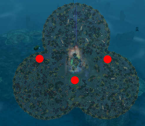 首先要杀死”贝斯坎普”的三个小BOSS“深渊帕高斯”,它会在图6中红点显示的位置。杀死三个之后大将军才会出现,大将军的位置会随机出现在的三个位置中的一个。